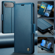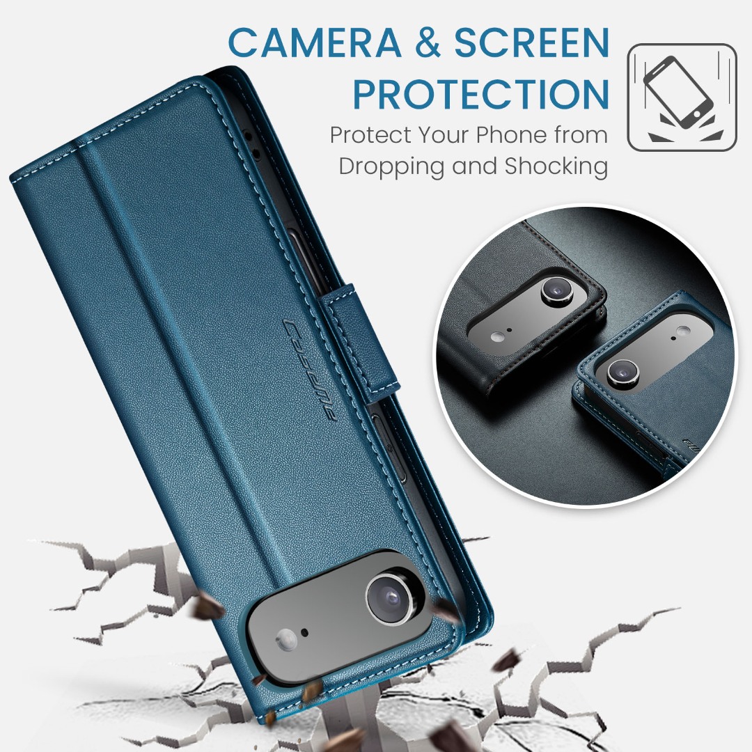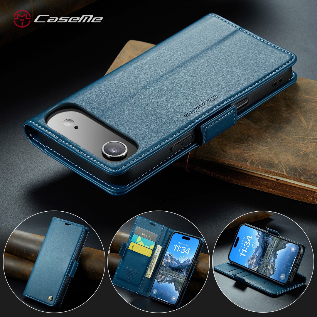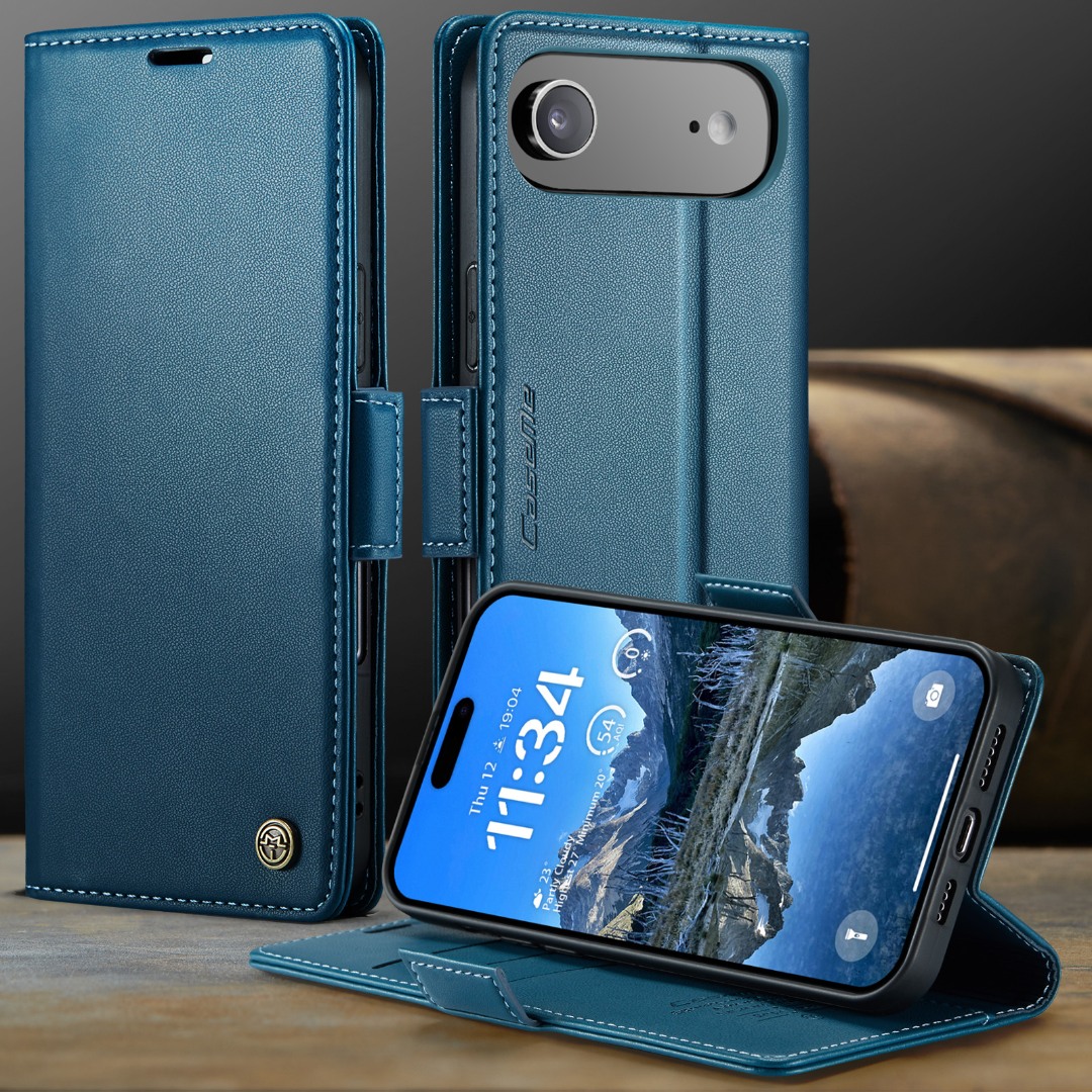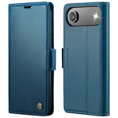Husa slim piele, tip portofel, stand, inchidere sigura magnetica, textura moale si aderenta in mana, protectie RFID, iPhone Air - CaseMe, Albastru