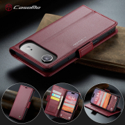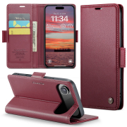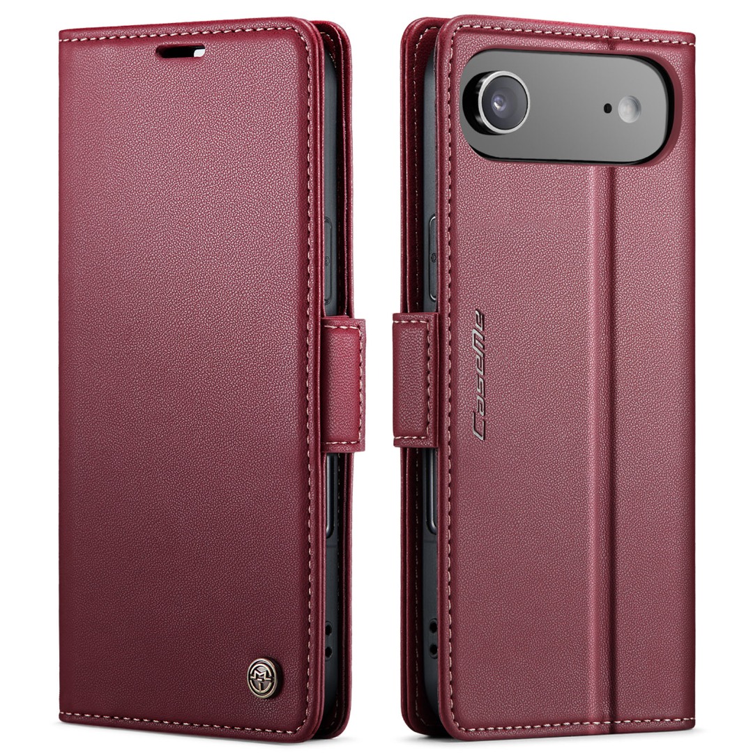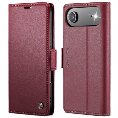 Husa slim piele, tip portofel, stand, inchidere sigura magnetica, textura moale si aderenta in mana, protectie RFID, iPhone Air - CaseMe, Rosu