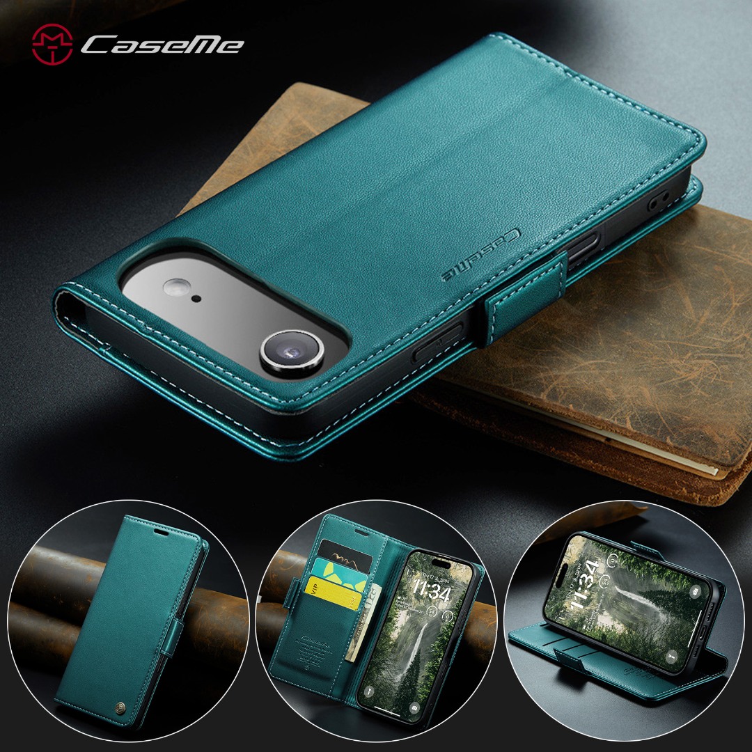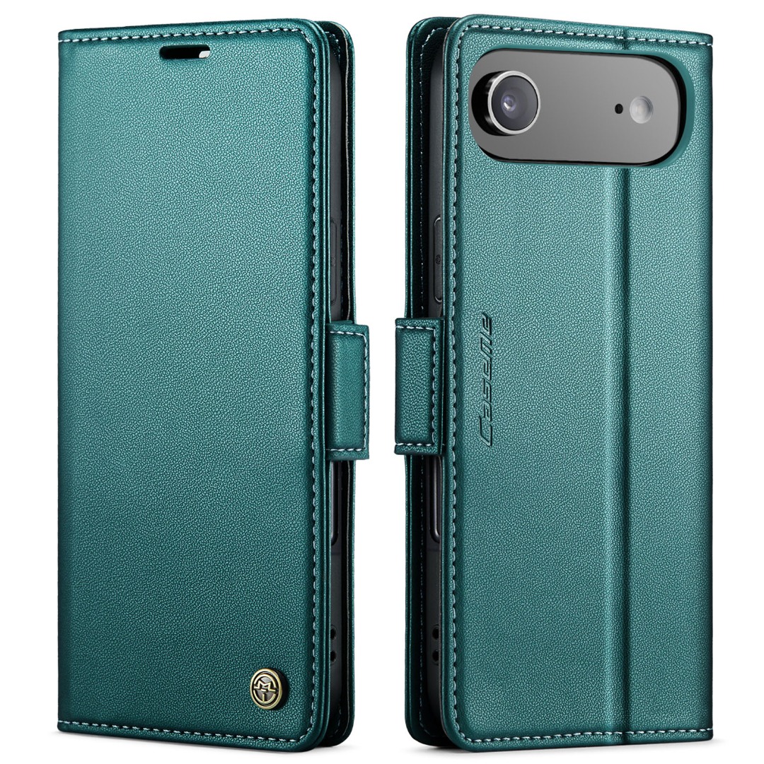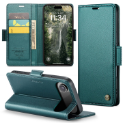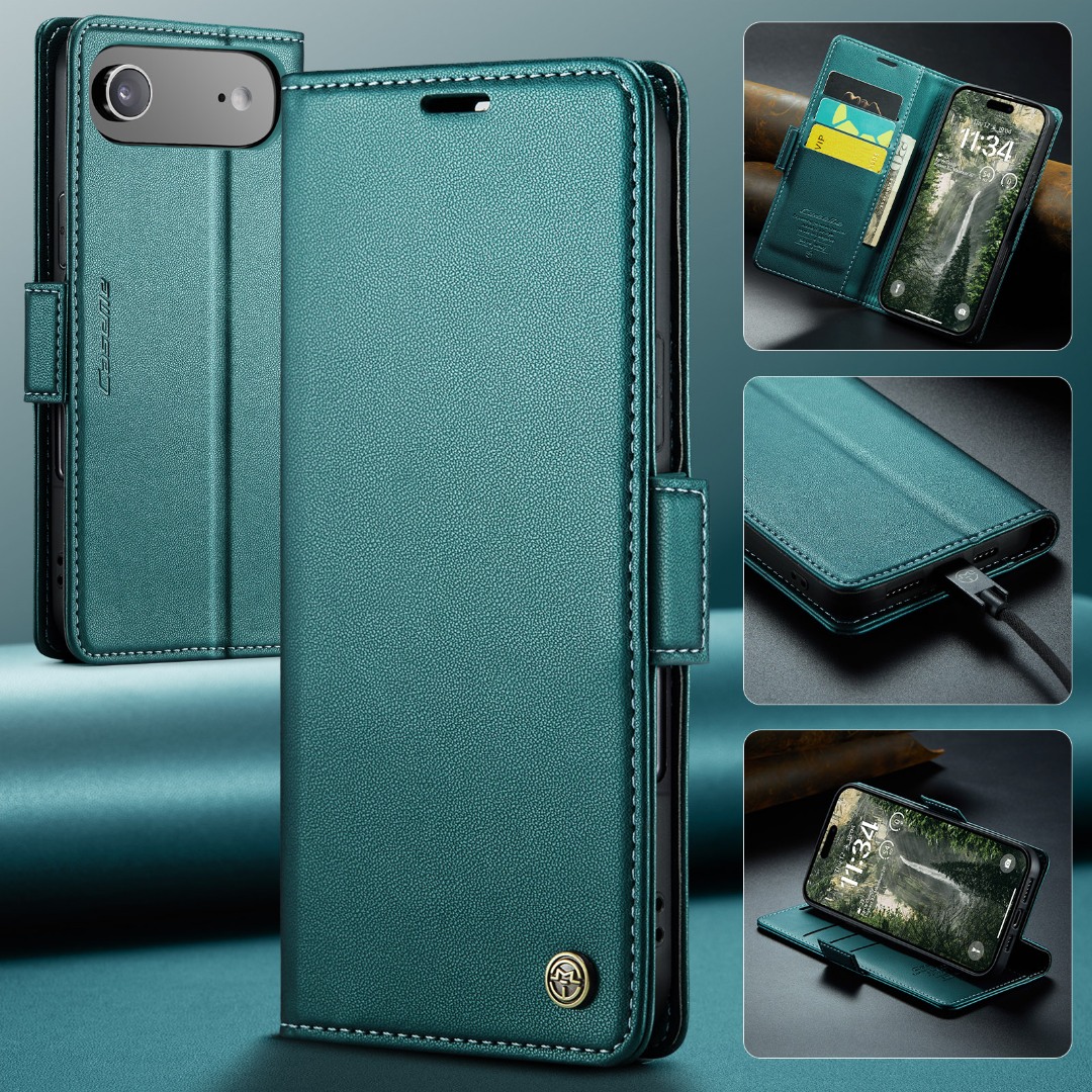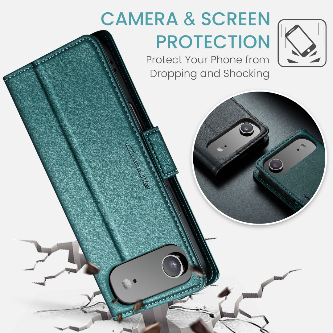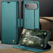Husa slim piele, tip portofel, stand, inchidere sigura magnetica, textura moale si aderenta in mana, protectie RFID, iPhone Air - CaseMe, Verde